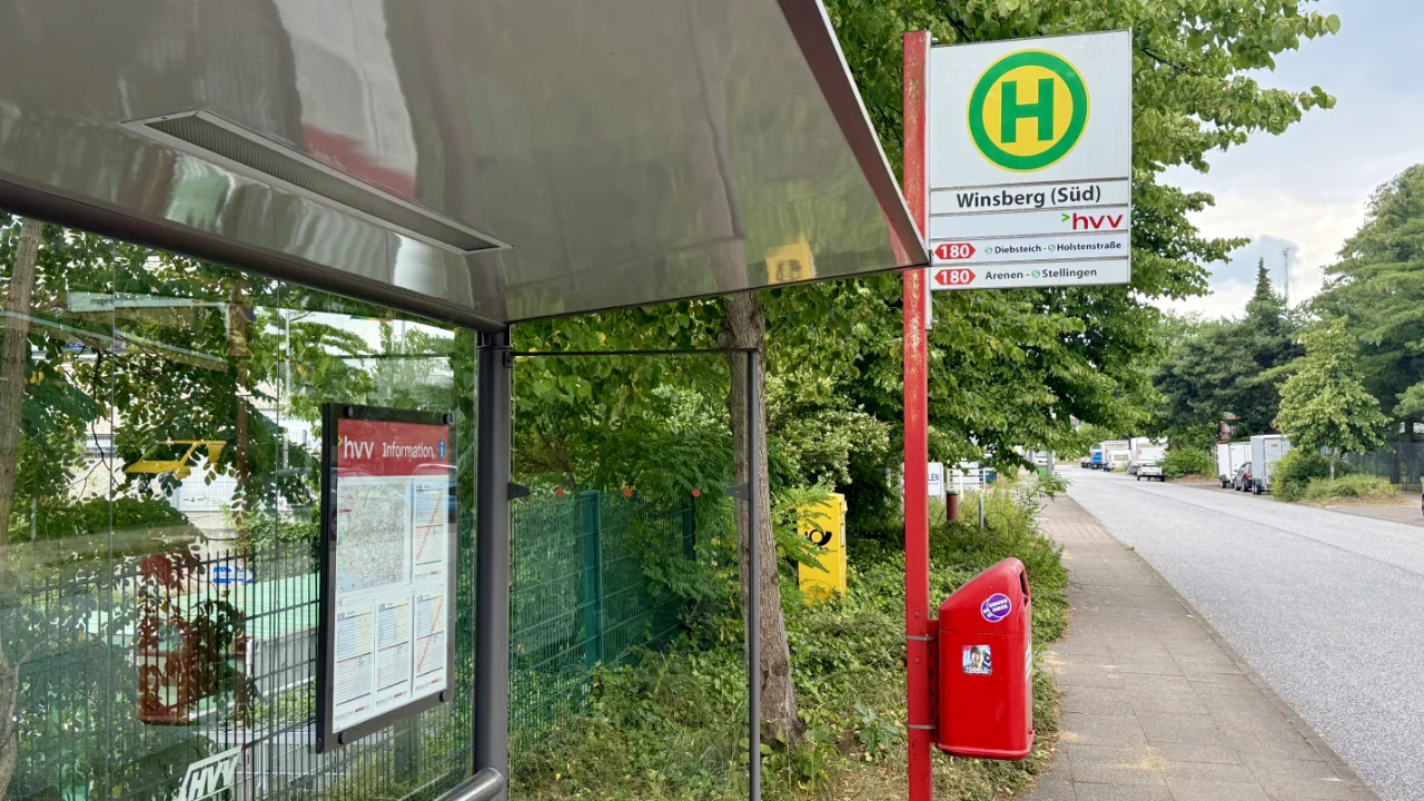 Buslinie 180 – vom Bf. Stellingen 13 min oder von Bf. Holstenstraße auch 13 min – Haltestelle: Winsbergring West o. Süd